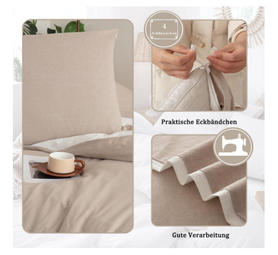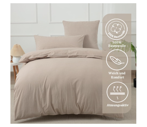 Nesture Bettwäsche 2-teilig Beige Baumwolle Stone-Wash Textur (ähnlich wie Leinen) 100% Baumwolle 1 Bettbezug (135x200cm) + 1 Kissenbezug (80x80cm)... Lesen Sie mehr