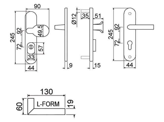 FELGNER Schutzbeschlag Klinke/Klinke 92mm | schwarz