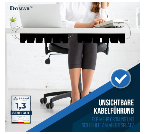 Ob im Homeoffice oder im Büro – mit dem flexiblen Kabelkanal von Domar gehören sichtbare Kabel auf dem Schreibtisch der Vergangenheit an – endlich Wohlfühlen am Arbeitsplatz!