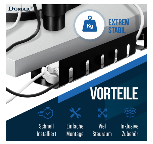 - Mit den beiden robusten Kabelkanälen, dem zusätzlichen Kabelrohr und 10 praktischen Klett-Kabelbindern lassen sich selbst große Mehrfachsteckdosen unsichtbar verstauen