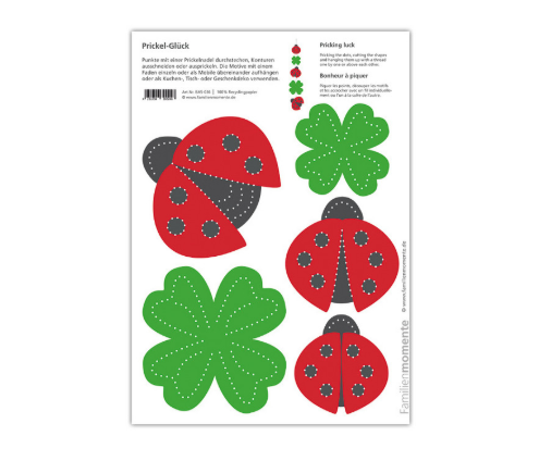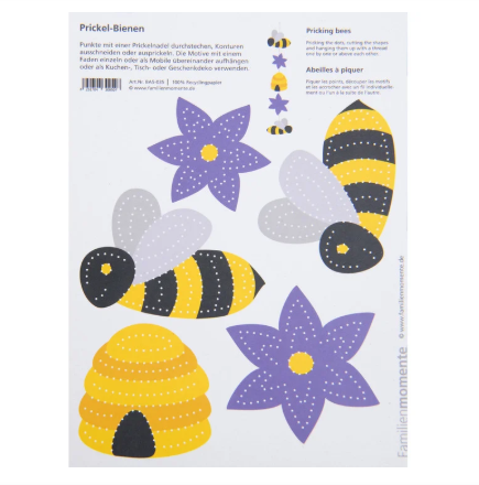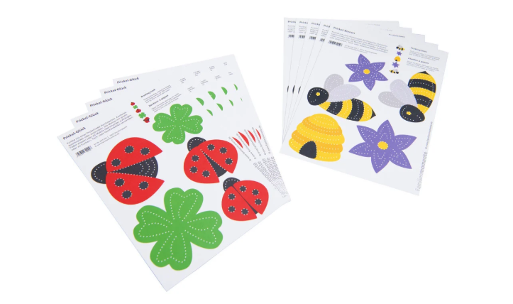 Mit einer Prickelnadel (nicht enthalten) können Kinder die vorgedruckten Punkte durchstechen und dabei Marienkäfer und Bienen zum Leben erwecken. Das Set besteht aus 10 DIN-A5-Bogen und ist mit klaren, leicht erkennbaren Punkten versehen, die den Prickelprozess vereinfachen.