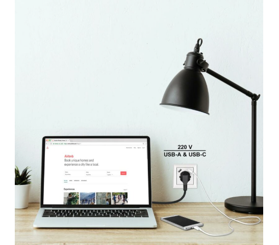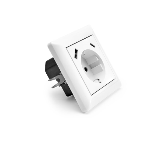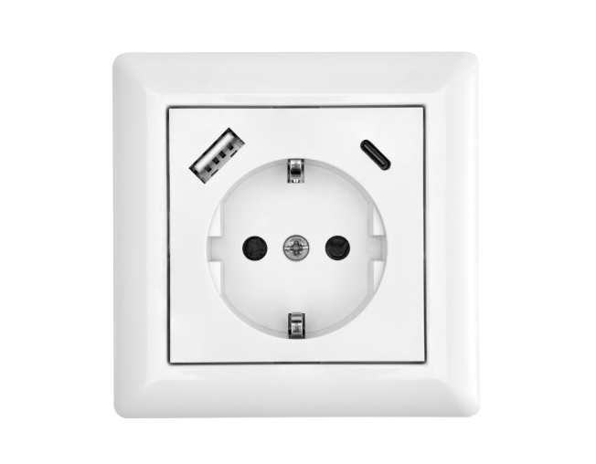 USB Schutzkontakt-Steckdose 2x USB Anschluss Rahmen weiß 2 x USB-A 5.0V 3.4A USB-A & Type C 5.0V 3.4A USB... Lesen Sie mehr