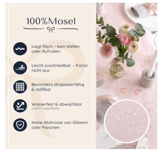 - Ob Geburtstag, Schulanfang, Gartenparty im Sommer, Weihnachten, Ostern oder Abschlussball, der edle Einwegläufer mit 30 cm Breite verschönert als Partydeko jeden Tisch